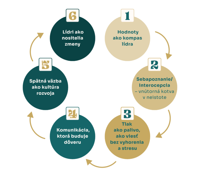 6 +1 interaktívnych online stretnutí 1 x za 2 týždne určených všetkým, ktorí chcú posilniť svoje líderské kompetencie, naučiť sa efektívnejšie komunikovaťa viesť svoj tím s väčšou istotou a dôverou, aj napriek všetkým výzvam moderného sveta pred ktorými stojíme. BONUS modul: pripav sa na zmeny, ktoré prináša AI